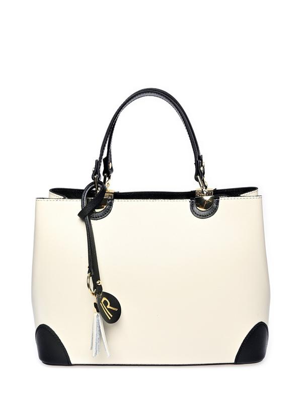 Top Handle Bag 100% cow leather Two top handles: 36 cm Interior zip organizing pocket Tassel accent on front Detachable shoulder strap Dimensions: 23.5x36x12 cm