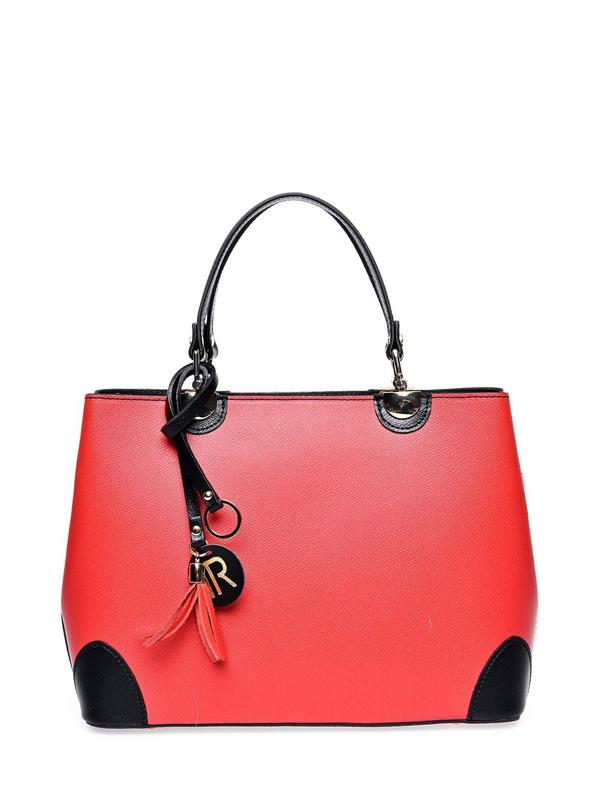 Top Handle Bag 100% cow leather Two top handles: 36 cm Interior zip organizing pocket Tassel accent on front Detachable shoulder strap Dimensions: 23.5x36x12 cm