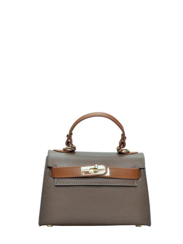 Crossbody bag 100% cow leather Front metallic flap over closure Internal zip pocket Handle: 21 cm Shoulder strap : 120 cm adjustable and removable Dimensions: 13x20x7 cm