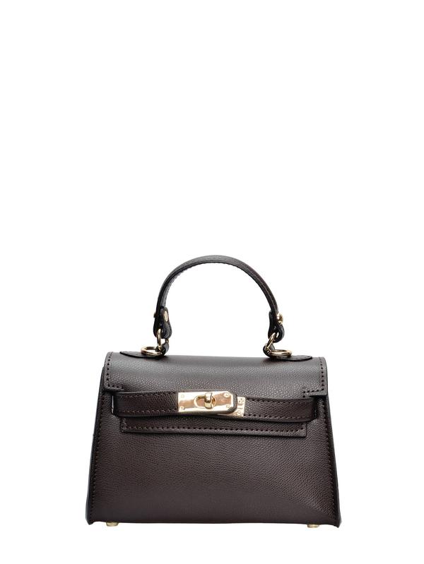 Crossbody bag 100% cow leather Front metallic flap over closure Internal zip pocket Handle: 21 cm Shoulder strap : 120 cm adjustable and removable Dimensions: 13x20x7 cm