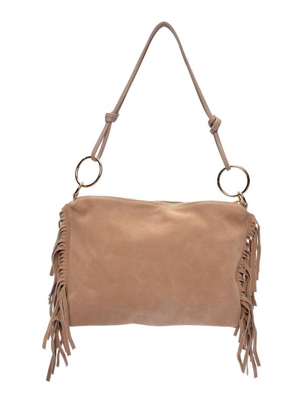 Fringe side details with gold-tone ring attachments