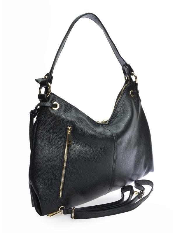 Hobo bag 100% cow leather Top zip closure Internal zip pocket Backside vertical zip pocket Dimensions : 29.5x43x/ cm Handle : 44 cm Shoulder strap: 120 cm